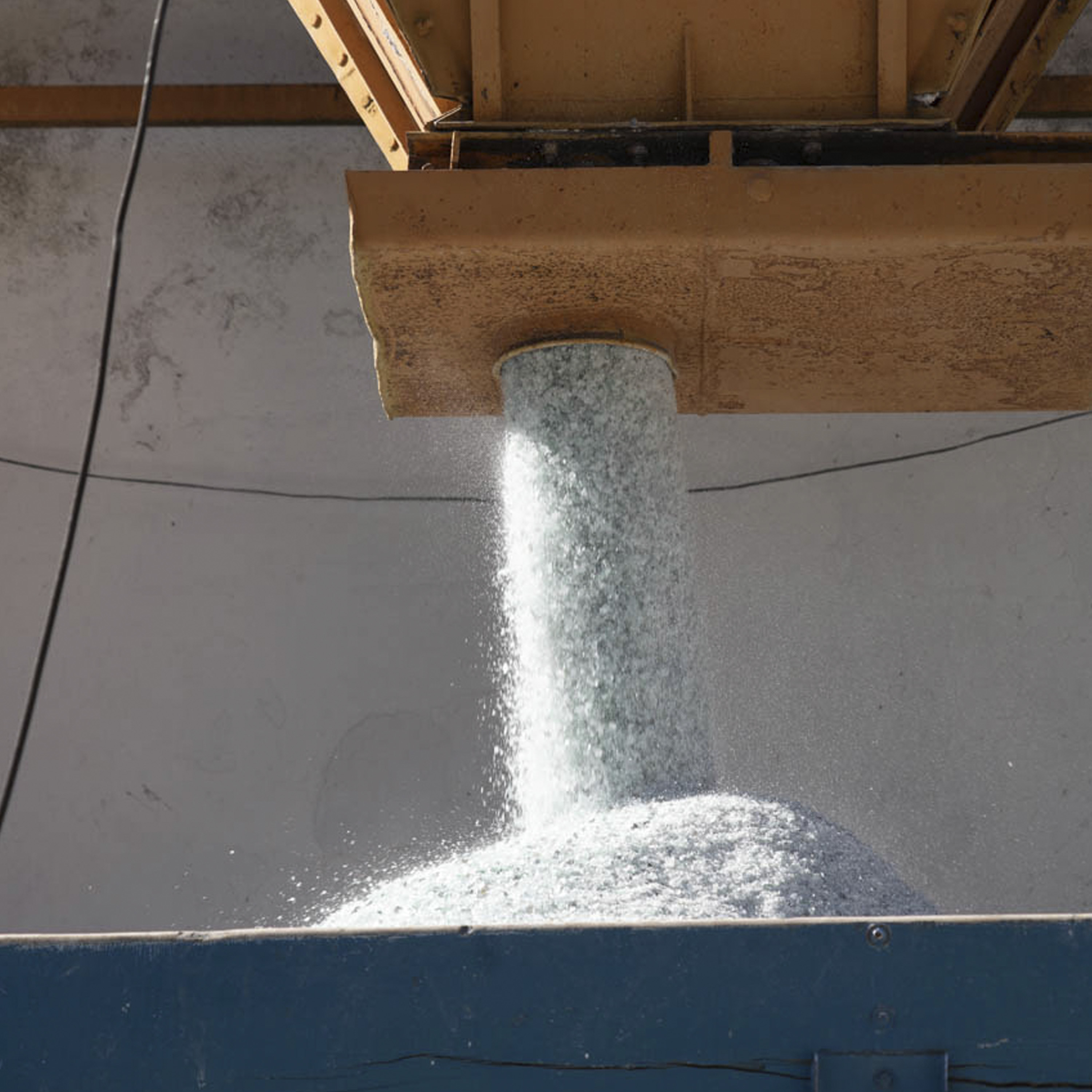 El vidrio laminado llega a nuestras plantas y es depositado en los playones, según su clasificación.